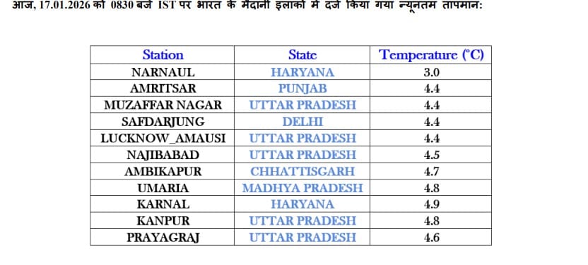 कहां कितना न्यूनतम तापमान