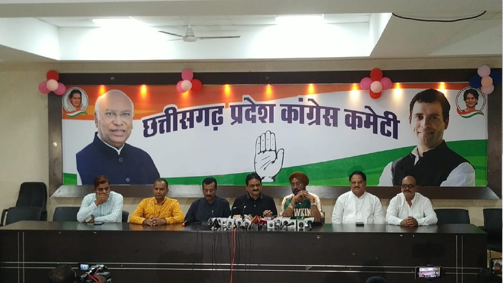 प्रेस कॉन्फ्रेंस लेते छत्तीसगढ़ कांग्रेस, प्रदेश बीजेपी प्रवक्ता नलिनीश ठोकने