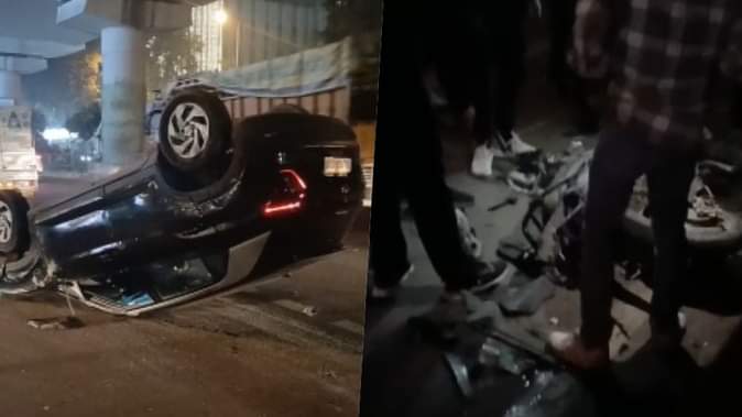 Delhi Accident: तेज रफ्तार का कहर, राजेंद्र नगर में स्कूटी को टक्कर मारकर सड़क पर पलटी कार, दो युवक गंभीर घायल