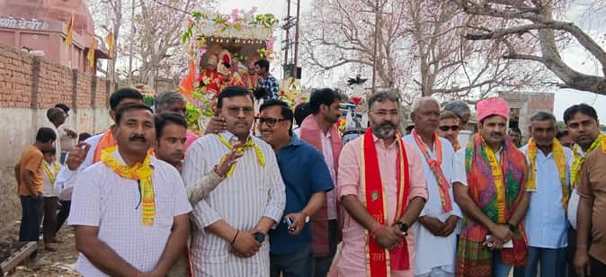 हनुमान जन्मोत्सव शोभा यात्रा में शामिल अतिथि गण एवं ग्रामीण