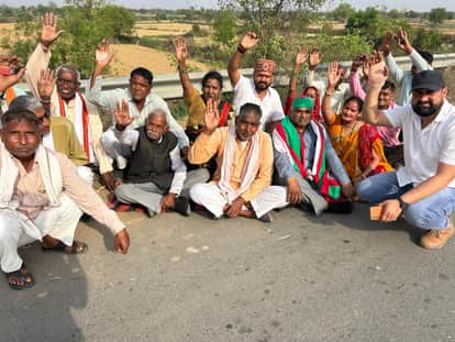 Agra News: जानलेवा गड्ढे में बैठ किसानों ने दिया धरना