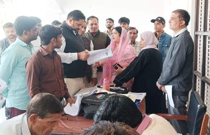फोटो31सहावर में आयोजित एसआई शिविर में तहसीलदार से जानकारी करतीं नगर पंचायत अध्यक्ष नासी खान