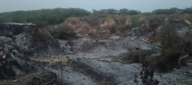 बुढे़रा के बीहड़ में लगी आग।