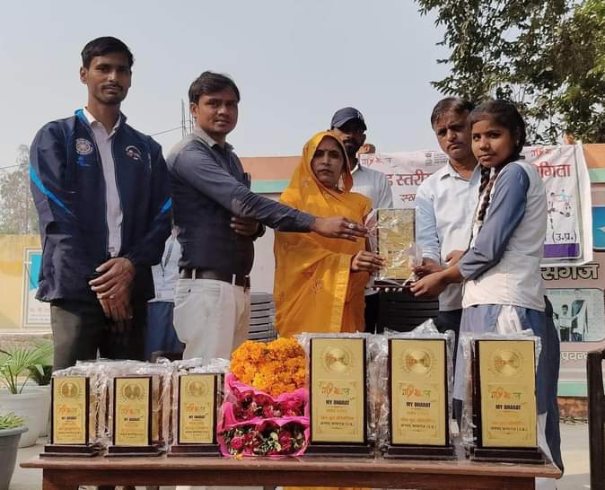 फोटो 12 कासगंज के सरावल में बिजेता खिलाडियों को पुरस्कार प्रदान करती ग्राम प्रधान सीमा देवी। स