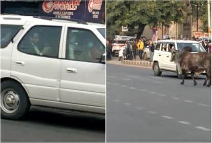 सीएम की फ्लीट के आगे सांड़