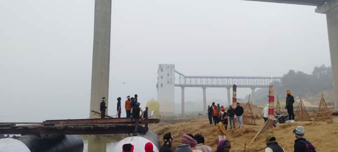 विधायक के हस्तक्षेप के बाद पांटून पुल को दोनों सीमाओ से बाँधने का कार्य शुरू