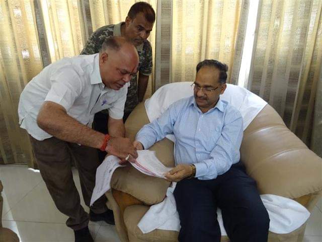 सीएमडी आलोक कुमार को पत्र सौंपते विनोद पांडे।