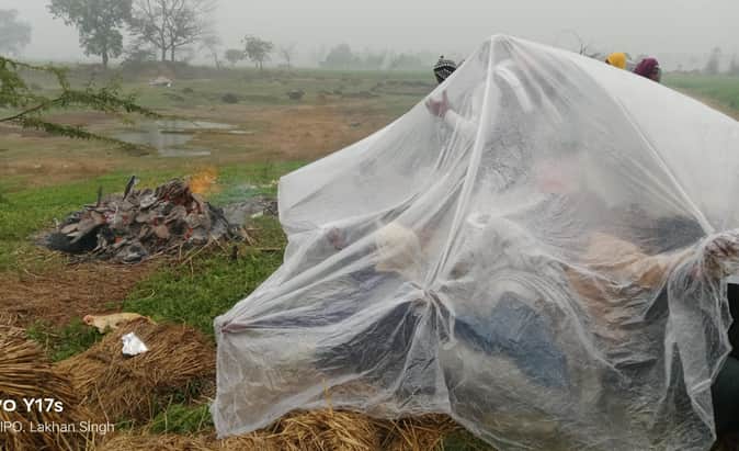 Aligarh News: तिरपाल के नीचे बैठकर किया अंतिम संस्कार