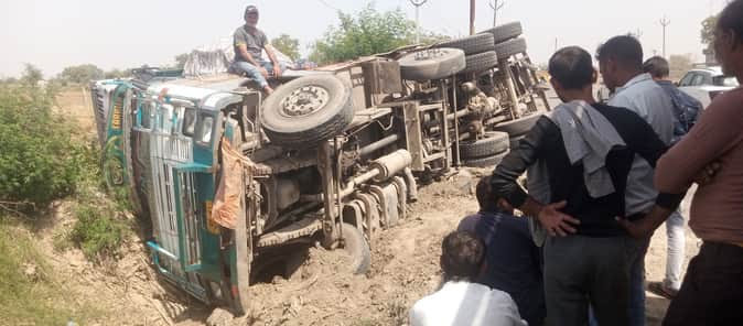 Aligarh News: पलवल-खैर हाईवे पर अनियंत्रित होकर पलटा ट्रक