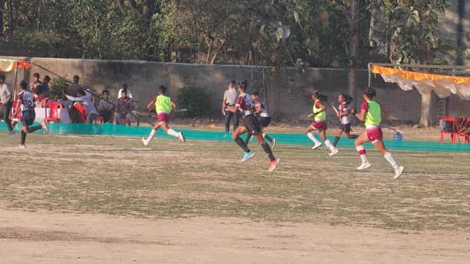 जलालपुर के नरेंद्र देव इंटर कॉलेज में अंतरराज्यीय महिला हॉकी प्रतियोगिता के दूसरे दिन शुक्रवार