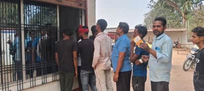 जलालपुर के अशरफपुर मजगवां स्थित एजेंसी पर लगी ग्राहकों की कतार।