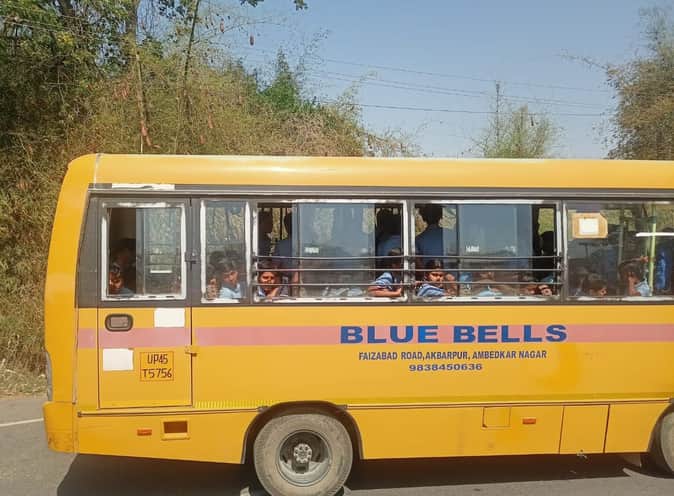 अयोध्या मार्ग पर यूपी 45 टी 5907 स्कूली वाहन जा रहा था। इसका रंग पीला नहीं था। वाहन के पिछले हिस्से में न तो क्षैतिज ग्रिल लगी थी न ही कोई सुरक्षा जाली लगी थी। ऐसे में जरा सी चूक से हादसे का अंदेशा था। अयोध्या मार्ग पर स्थित स्कूली वैन में क्षमता से अधिक बच्चों को बैठाया गया था। सीट न होने से एक स्कूली बच्चा खिड़की पर लगे क्षैतिज ग्रिल पर बैठा था। पिछले हिस्से में इस कदर भीड़ थी कि छात्रा का हाथ बाहर निकला था। इसी स्कूल की बस नंबर यूपी 45 टी 5756 में बच्चों को ठूंस कर ले जाया जा रहा था, जितने बच्चे सीट बैठे थे उतने ही सीट व बीच में खड़े नजर आए।