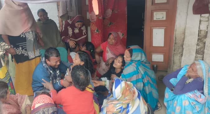 राजेसुल्तानपुर के पदुमपुर गांव में मृतक के घर में रोते बिलखते परिजन।