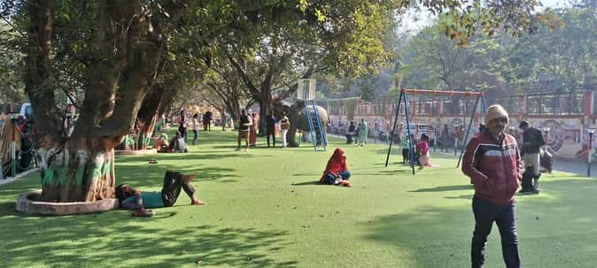 शनिवार सुबह धूप निकलने के बाद कलेक्ट्रेट के निकट पार्क में बैठे लोग।