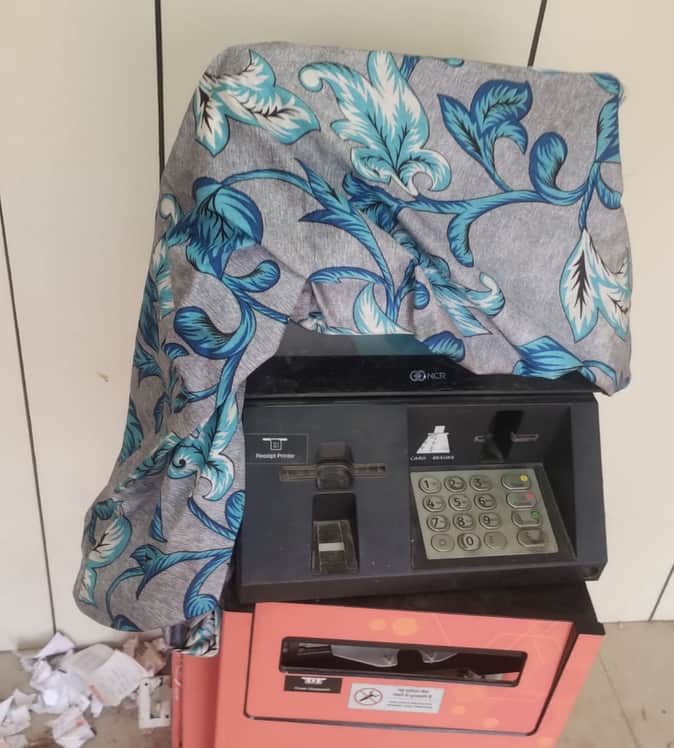 - फोटो : बाबूगंज में लगे एटीएम की टूटी मशीन।