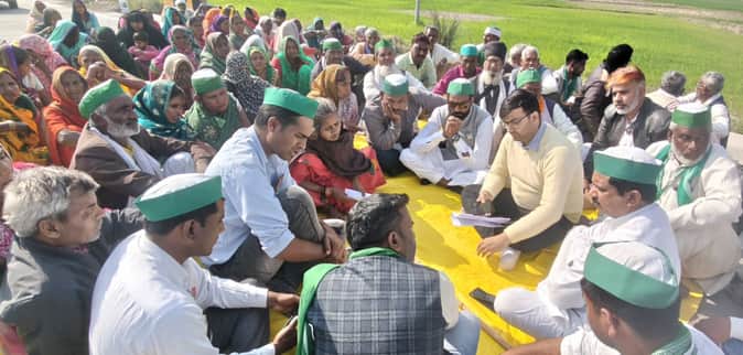 तिलोई के नसरतपुर टोल प्लाजा पर धरना देते भाकियू कार्यकर्ता।