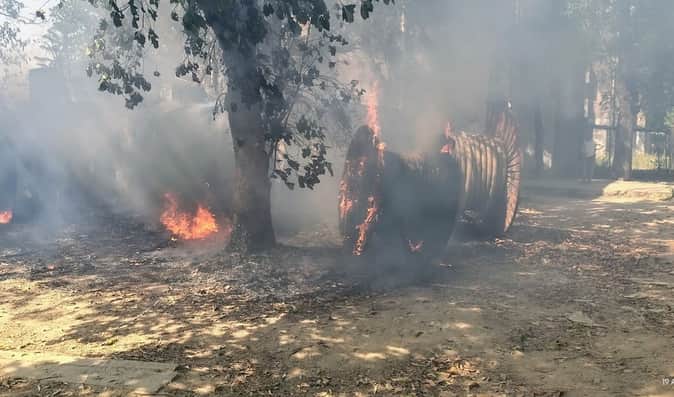 पावर हाउस परिसर में ट्रांसफार्मर मरम्मत कार्यशाला के साथ विद्युत खंभे और केबल तारों का भंडारण स्थल भी बना है। खुले स्थान पर रखे ड्रमों में लिपटे केबल तारों में अचानक आग भड़क उठी। कुछ ही देर में आग ने कई बंडल अपनी चपेट में ले लिए। आग की चिंगारी पास के खेतों तक पहुंचने लगी, जिससे खतरा बढ़ गया। किसानों ने तत्काल प्रयास कर आग को फसल तक फैलने से रोक लिया।