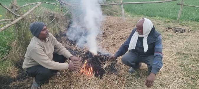 - फोटो : बूंदाबांदी के बाद बढ़ी ठंड के बाद अलाव तापते लोग।