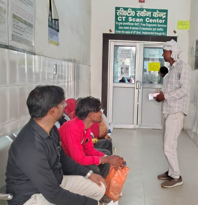 गौरीगंज सीएचसी स्थित सीटी स्कैन सेंटर के बाहर बैठे मरीज। -संवाद