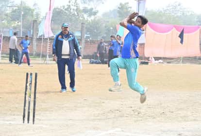 गौरीगंज के विशुनदासपुर स्थित खेल मैदान में बॉलिंग करता खिलाड़ी। स्रोत : आयोजक