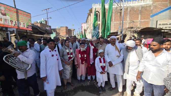 जायस कस्बे में निकले गागर-चादर शरीफ के जुलूस में शामिल लोग। स्रोत आयोजक