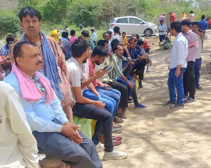 संग्रामपुर में सिलिंडर लेने के लिए लगी उपभोक्ताओं की लंबी कतार।