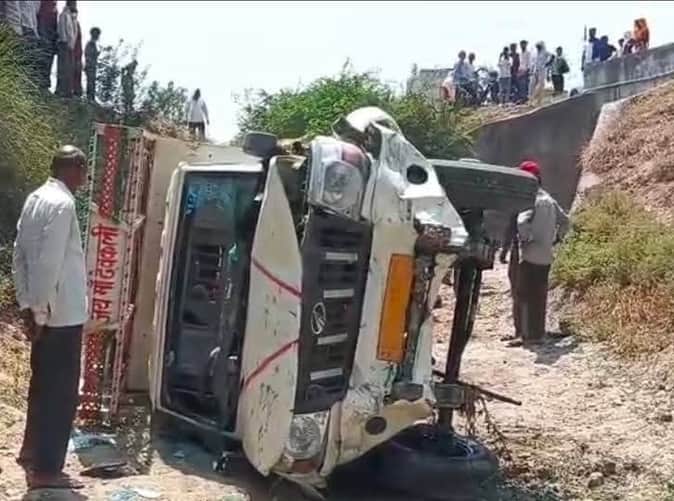 मोहनगंज में रायबरेली–अयोध्या राष्ट्रीय राजमार्ग पर अलाईपुर गांव के पास पलटी पिकअप।-संवाद