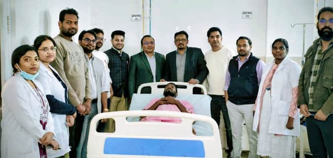 तिलोई मेडिकल कॉलेज में कूल्हा प्रत्यारोपण के बाद मरीज के साथ मेडिकल टीम।