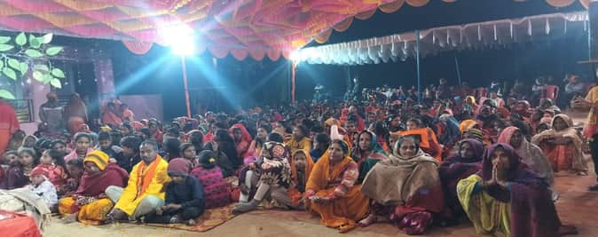 बाजारशुकुल के खेममऊ मेें कथा सुनते श्रद्धालु। स्त्रोत : आयोजक