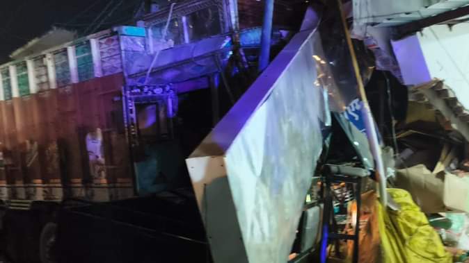 जायस कस्बे में मकान में घुसा अनियंत्रित ट्रक। स्त्रोत : सोशल मीडिया