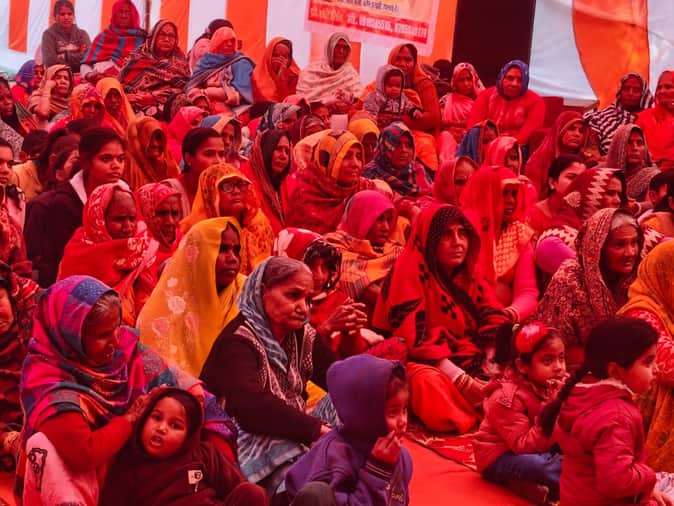 संग्रामपुर के तिवारीपुर करनाईपुर में श्रीमद्भागवत कथा सुनते श्रोता। स्रोत आयोजक