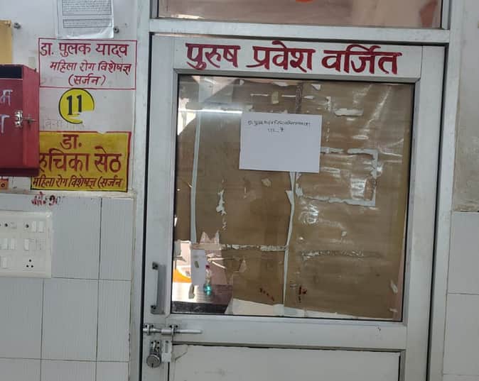 जिला अस्पताल स्थित महिला रोग विशेषज्ञ की ओपीडी का बंद गेट।