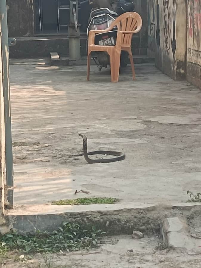 गजरौला। सदरपुर स्थित आरोग्य आयुष्मान मंदिर में सोमवार दोपहर उस समय अफरा-तफरी मच गई, जब कार्यालय के अंदर एक डरावना काला नाग फन फैलाए बैठा मिला। नाग को देखते ही वहां मौजूद स्वास्थ्य कर्मी घबरा गए और शोर मचाते हुए डर के मारे बाहर निकल आए।