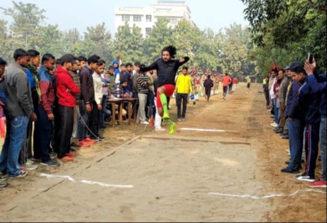 जेएसएच कॉलेज में चल रही एथलेटिक्स प्रतियोगिता में लंबी कूद में प्रतिभाग करता खिलाड़ी। स्रोत- क