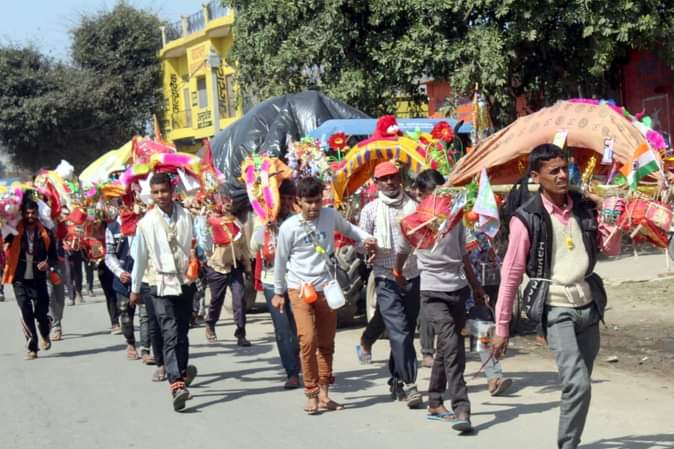 हरिद्वार से कांवड़ लेकर अमरोहा से गुजरते कांवड़िए।