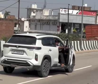 फोटो-39- कानपुर-इटावा हाईवे पर खिड़की खोलकर कार चलाता युवक। वीडियो ग्रैब