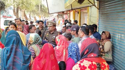 फोटो-16-परिजन को समझाते कोतवाल राजकुमार सिंह व मौजूद भीड़। संवाद