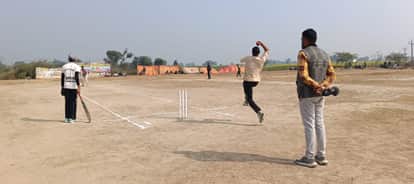 फोटो-33- खेल मैदान में अपनी प्रतिभा का प्रदर्शन करते क्रिकेट खिलाड़ी।संवाद