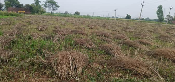 फोटो-38-खेत में कटी पड़ी सरसों की फसल।संवाद