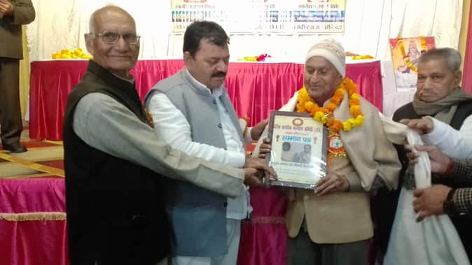 Auraiya News: स्थापना दिवस पर वृद्धजनों को किया सम्मानित