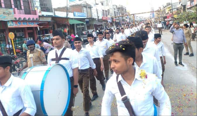 Auraiya News: संघ शताब्दी वर्ष पर हुआ पथ संचलन