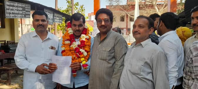 फोटो-47-अध्यक्ष बने सुशील पांडेय का फूलमाला पहनाकर स्वागत करते समर्थक। स्रोत: स्वयं