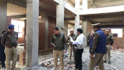 फोटो-53-निर्माणाधीन थाने का निरीक्षण करते एसपी मौजूद पुलिस अधिकारी। संवाद