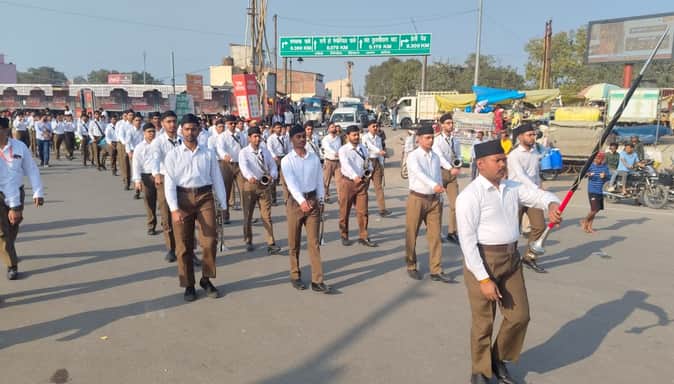 03- रामपथ पर पथ संचलन करते संघ के स्वयंसेवक- संवाद