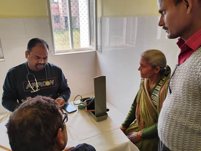 10-पीएचसी बवां में आयोजित मुख्यमंत्री जन आरोग्य मेले में मरीज देखते चिकित्सक।-संवाद