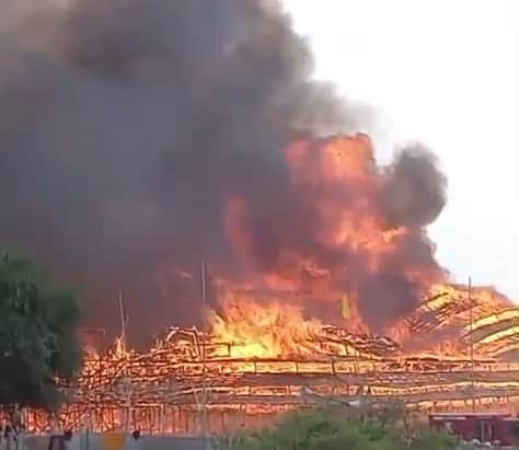 राजघाट पर चल रहे महायज्ञ की यज्ञशाला में लगी भीषण आग।
