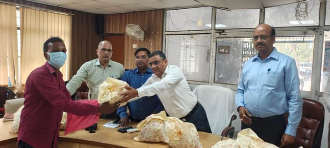 8-दर्शननगर स्थित सीएमओ सभागार में क्षय रोगियों को पोषण पोटली बांटते अपर निदेशक व अन्य।-स्वास्थ