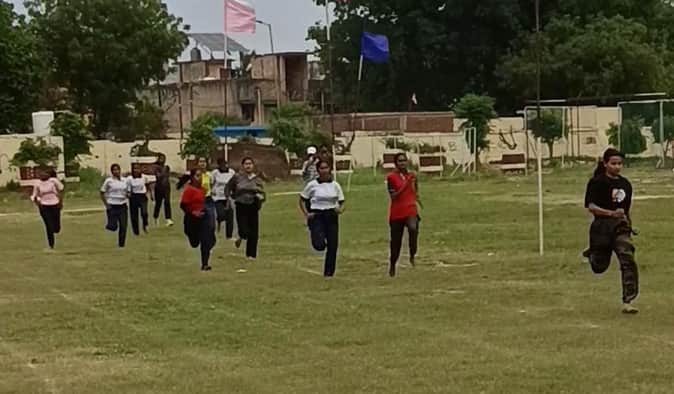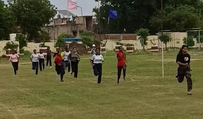 साकेत महाविद्यालय के ग्राउंड में दौड़ लगाती छत्राएं।