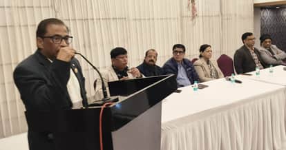 31-सिविल लाइन स्थित होटल में पत्रकारों से वार्ता करते आईएमए के पदाधिकारी व अन्य।-संवाद