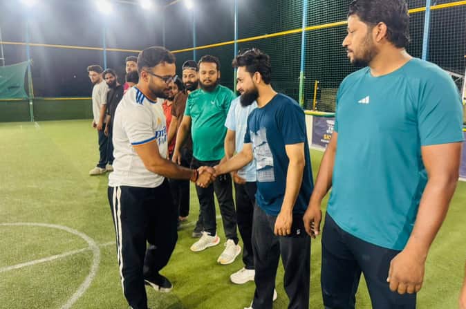 रिकाबगंज स्थित मैदान में आयोजित क्रिकेट प्रतियोगिता में खिलाड़ियों से परिचय प्राप्त करते अति